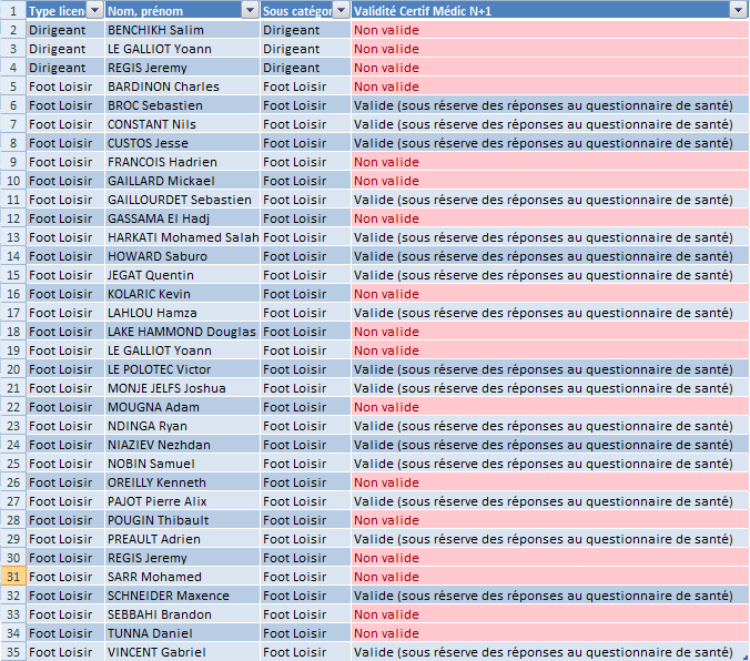 9) Inscription Pour les joueurs présents lors de la saison 2018-19 (renouvellement) : Afin de pouvoir participer aux matches de ce championnat, il faut IMPÉRATIVEMENT remplir les 3 conditions suivantes : Etre à jour de sa cotisation FRENCH BRANCH pour la saison 2019-2020 (30€) Fournir le règlement pour la participation au championnat FFF (100€ avant le 30/09 – 120€ après le 01/10)* Remplir numériquement les informations de la "DEMANDE DÉMATÉRIALISÉE - SAISON 2019-2020" que vous aurez reçue par mail Fournir si besoin un certificat médical (format .JPG) sur la plateforme numérique (voir détails ci-dessous) Certificat médical : https://lfpl.fff.fr/wp-content/uploads/sites/20/bsk-pdf-manager/4bfd42e5b4cd73d175f4cd0dc66803e3.pdf AIDE pour les organisateurs: COMMENT SAVOIR SI MES LICENCIE(E)S DOIVENT FOURNIR UN CERTIFICAT MEDICAL POUR LEUR LICENCE LA SAISON PROCHAINE ? https://lfhf.fff.fr/wp-content/uploads/sites/15/bsk-pdf-manager/c0e1af64eafb15b29398cbd199b84812.pdf Voici la liste des joueurs dont le certificat médical déjà fourni est encore valide: - Si un certificat médical a été fourni il y a moins de 3 ans (lors de la saison 2017-18 ou 2018-19): Il n’y a pas besoin de certificat médical si vous répondez « non » à toutes les questions du questionnaire médical fourni en ligne ou ci-après. S’il y a une réponse « oui », vous devrez remplir la partie « certificat médical » dans le formulaire version papier ou en fournir un numériquement. - Si un certificat médical a été fourni il y a plus de 3 ans (lors de la saison 2016-17): Votre certificat médical N'EST PLUS VALABLE, vous devez donc en fournir un autre plus récent ! Votre licence sera validée par le bureau UNIQUEMENT si vous avez réglé votre cotisation. *LIRE IMPERATIVEMENT "partie 7 - cotisation annuelle" pour plus de détails Pour les nouveaux joueurs : Afin de pouvoir participer aux matches de ce championnat, il faut IMPÉRATIVEMENT remplir les 6 conditions suivantes : Etre à jour de sa cotisation FRENCH BRANCH pour la saison 2019-2020 (30€) Fournir le règlement pour la participation au championnat FFF (110€ avant le 30/09 – 120€ après le 01/10)* Remplir numériquement les informations de la "DEMANDE DÉMATÉRIALISÉE - SAISON 2019-2020" que vous aurez reçue par mail** Fournir un certificat médical (format .JPG) sur la plateforme numérique Fournir une photo d'identité couleur (format .JPG) sur la plateforme numérique Fournir une copie de votre carte d’identité ou passeport recto/verso (format .JPG) sur la plateforme numérique Certificat médical : https://lfpl.fff.fr/wp-content/uploads/sites/20/bsk-pdf-manager/4bfd42e5b4cd73d175f4cd0dc66803e3.pdf *LIRE IMPERATIVEMENT "partie 7 - cotisation annuelle" pour plus de détails **afin de pouvoir vous envoyer la demande dématérialisée, il faudra nous fournir au préalable les informations suivantes : Pour les joueurs mutés (changement de club ou double-licence) : LICENCE PAPIER A REMPLIR ET A SCANNER Afin de pouvoir participer aux matches de ce championnat, il faut IMPÉRATIVEMENT remplir les 3 conditions suivantes : Etre à jour de sa cotisation FRENCH BRANCH pour la saison 2019-2020 (30€) Fournir le règlement pour la participation au championnat FFF (110€ avant le 30/09 – 120€ après le 01/10)* Imprimer et remplir la "DEMANDE DE LICENCE DE FOOTBALL - SAISON 2019-2020" ci-dessous https://paris-idf.fff.fr/wp-content/uploads/sites/19/bsk-pdf-manager/b34adc937cf7f65426e40c516cb7bf72.pdf Voici une aide pour les cases obligatoires à remplir : http://www.liverpoolfrance.com/wp-content/uploads/2017/08/Aide_formulaire_2017-18.jpg Faire remplir la sous-partie certificat médical par votre médecin ou fournir autrement un certificat médical (format .JPG) Certificat médical: https://lfpl.fff.fr/wp-content/uploads/sites/20/bsk-pdf-manager/4bfd42e5b4cd73d175f4cd0dc66803e3.pdf Envoyer la demande de licence avec l'avis du médecin à fff@liverpoolfrance.com *LIRE IMPERATIVEMENT "partie 7 - cotisation annuelle" pour plus de détails Remarques : Il est possible de cumuler une autre licence FFF « Club » avec cette licence loisir mais il faudra avoir l’accord du 1er clubOn ne peut pas cumuler deux licences « Loisir » Ne pas souscrire aux garanties complémentaires si vous êtes déjà bien assuré (mutuelle, etc).Remplir la partie gauche numériquement pour une meilleure lisibilité. Vérifier que toutes les informations sont bien remplies (nationalité, sexe, date et lieu de naissance, etc)Cocher la case " Joueur Loisir " dans la partie "Catégorie(s)"Un joueur mineur ne peut malheureusement pas figurer dans une équipe loisir FFFPour plus d’informations, contactez Hadrien François ou écrivez-nous à fff@liverpoolfrance.com Sportivement, YNWA Yoann Le Galliot Responsable Sportif de Liverpool France 06.76.38.01.67 football@liverpoolfrance.com Hadrien FrançoisPrésident Championnat FFF 06.43.19.28.24fff@liverpoolfrance.com Stan BardyCoach Championnat FFF 06.74.82.01.04stanwowbardy@gmail.com -