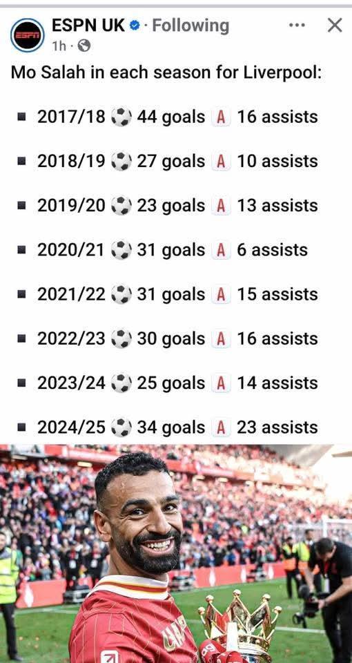 On ne verra plus Salah sous le maillot de Liverpool. Que sa sortie médiatique soit contestable, je peux être d'accord. Mais ne pas oublier que son crédit est très supérieur à celui de Slot et du board actuel dans l'histoire de Liverpool. Ne pas oublier qu'on s'en prend à un type qui est moins bien sur 4 mois depuis 8 ans. Et que le reste de l'équipe n'est pas meilleur..(on souhaite bonne chance à Slot pour composer l'équipe quand il aura perdu, physiquement ou moralement, le reste des anciens) S'ils n'en voulaient plus, pourquoi le prolonger 2 ans il y a à peine 6 mois.. De manière plus générale, une tendance se confirme : aucun club, même Liverpool, n'est capable d'offrir une sortie digne de ce nom à une légende. Bienvenue dans le monde actuel, avec ses valeurs à vomir.